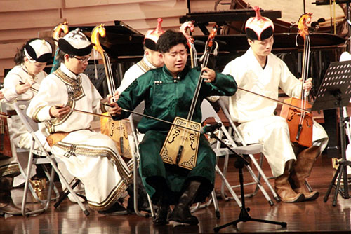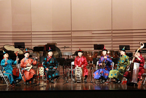 2015年6月9日晚7:30,我院蒙古族长调、马头琴、呼麦世界“非遗”专场音乐会在浙江大学紫金港剧场隆重上演。这也是我院巡演团继山东艺术学院、上海交通大学、上海音乐学院、同济大学演出之后的第五场演出。