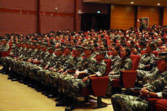 承训部队公安边防部队呼和浩特指挥学院学员大队大队长巴根中校在军训动员大会上讲话,希望同学们端正思想,认真对待,充分认识军训活动的重要意义,用高标准衡量自己,用严格要求规范自己,决不能存在拖沓懒散的思想。 加强组织纪律性。特别要遵从教官的教导,服从命令,听从指挥,不怕困难,刻苦训练。同时要十分注意人身安全,杜绝一切意外事故的发生。