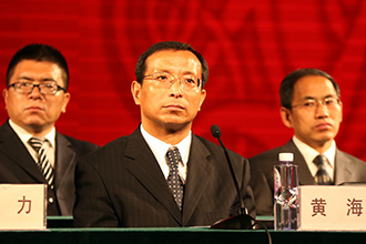 我院党委书记黄海(左图)主持会议;我院院长李玉林发表讲话