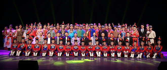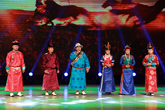 晚会在充满蒙古风情的舞蹈《蒙古马》中拉开帷幕。在历时两个多小时的晚会中,师生们共同用洋溢的热情为现场的新生献上了一场高潮迭起、精彩纷呈的视听盛宴。开场舞之后,我院优秀教师格力格阿拉希带来了极具特色的锡林郭勒民歌《四季》。除此之外,舞蹈《巴艺思勒》和《激扬布鲁》掀起了全场的高潮,演员们流畅而整齐的舞步展现了蒙古舞恢宏的气势。我院独有的马头琴、呼麦及二人台表演不仅带给新生们耳目一新的感觉,也使他们更深刻地体会到我院浓厚的艺术氛围。晚会随着舞蹈《汗沁•贝勒》的结束也圆满落幕。