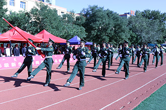 2015级军训学生组编的20个排以饱满的热情和昂扬的斗志接受了学院领导和部队首长的检阅。整齐的步伐,飒爽的英姿,威武的军体拳和擒敌拳表演赢得了大家的阵阵掌声。会上,赵林平副院长宣读了2015级新生军训工作先进集体和个人名单。学院领导为受表彰的先进集体和个人颁发了奖牌和证书。公安边防部队呼和浩特指挥学院学员大队政委王宝民中校讲话,参训学生代表张佳明同学发言。