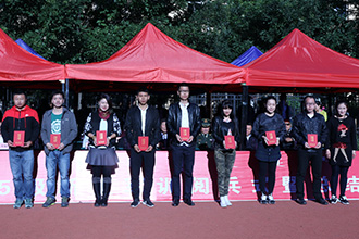 学生代表发言(左图);颁奖(右图)
