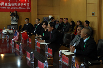 见面会在我院三楼会议室举行。我院院长李玉林、副院长孟显波、学院相关职能部门、院系负责人和肯塔基大学师生代表团的人员参加了此次会议。见面会由李玉林院长主持。