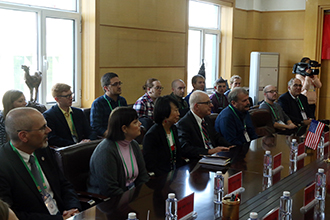提克院长在讲话中说,2013年内蒙古大学艺术学院到肯塔基大学艺术学院的交流访问至今让学院的师生们称赞不已,尤其是“马文化交流周”活动的成功举办是肯塔基大学艺术学院多年来办学中的一次亮点。此次交流访问活动同样具有重要意义,同时希望在此次活动中能够商议关于内蒙古大学艺术学院能够再次到肯塔基大学艺术学院进行交流访问的相关事宜,让两校之间的交流与合作常此保持下去。