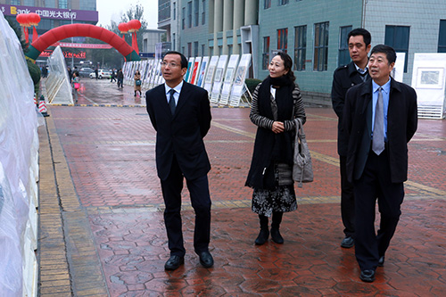 我院党委书记黄海(左一)、党委副书记兼纪委书记毅力(右一)、副院长赵林平(左二)观看展览